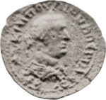 laureate, draped and cuirassed bust of Valerian, right, seen from rear
