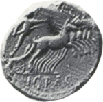 Helios driving quadriga right holding spear in right (?)