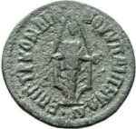 laureate, draped and cuirassed bust of Valerian, right, seen from rear |