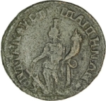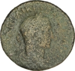 laureate, draped and cuirassed bust of Valerian, right, seen from rear |