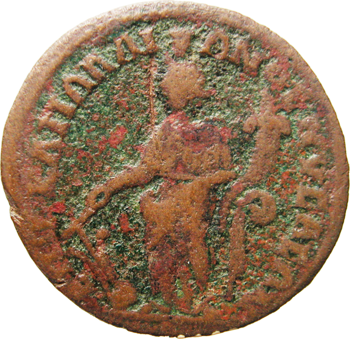 Tyche standing left, holding rudder and cornucopia