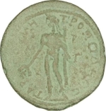 Apollo standing left, quiver at shoulder, holding branch and chlamys |