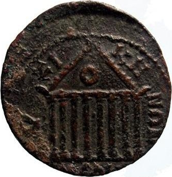 temple with eight columns with wreath in pediment