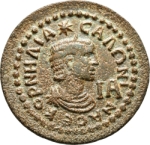 Apollo Sidetes standing left, holding patera in right and staff of laurel in left
