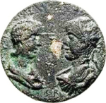 diademed and draped bust of Salonina, right, facing laureate, draped and cuirassed bust of Gallienus right, seen from rear