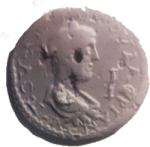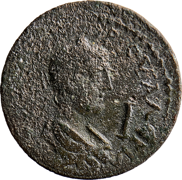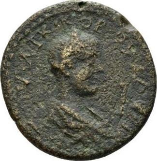 laureate, draped and cuirassed bust of Valerian II, right, seen from rear |