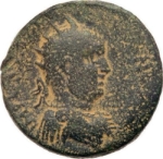 radiate, draped and cuirassed bust of Valerian (?), right, seen from front