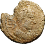 radiate, draped and cuirassed bust of Gallienus, right, seen from front |