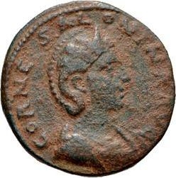 Roma seated left, on shield, holding eagle and spear; in field right, murex shell