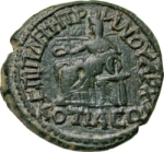 The name Demetrianos occurs at Cotiaeum also under Macrinus and Severus Alexander, so it is possible that this coin is earlier. However, since it has the same ligatured form of his name as coins of Valerian and Gallienus, it has been retained in RPC X.