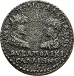 confronted busts of Valerian, radiate, draped and cuirassed, right, and Gallienus, laureate, draped and cuirassed, left, both seen from rear