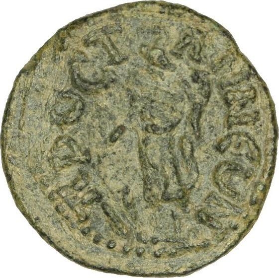 Tyche standing left, holding rudder and cornucopia