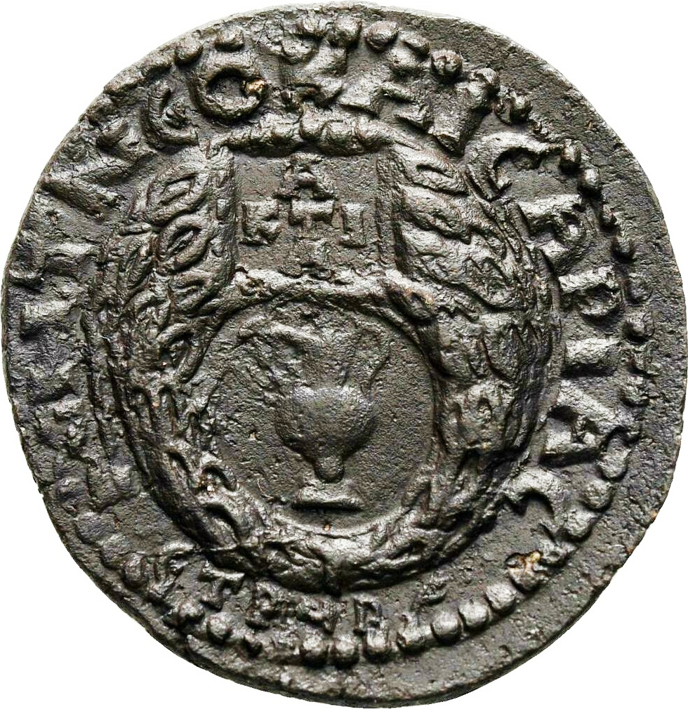 wreath on which inscribed tablet; in centre, amphora |