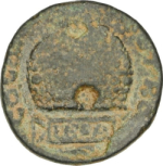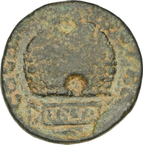 inscribed prize crown, having two apertures, one above containing palm; below, inscribed tablet |
