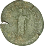 Zeus standing facing, looking left, holding patera and long sceptre; at his feet, eagle, left, looking back |