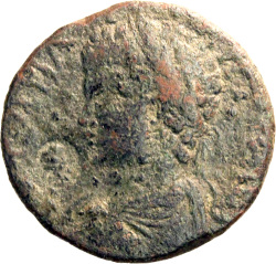laureate, draped and cuirassed bust of Caracalla, left, seen from rear
