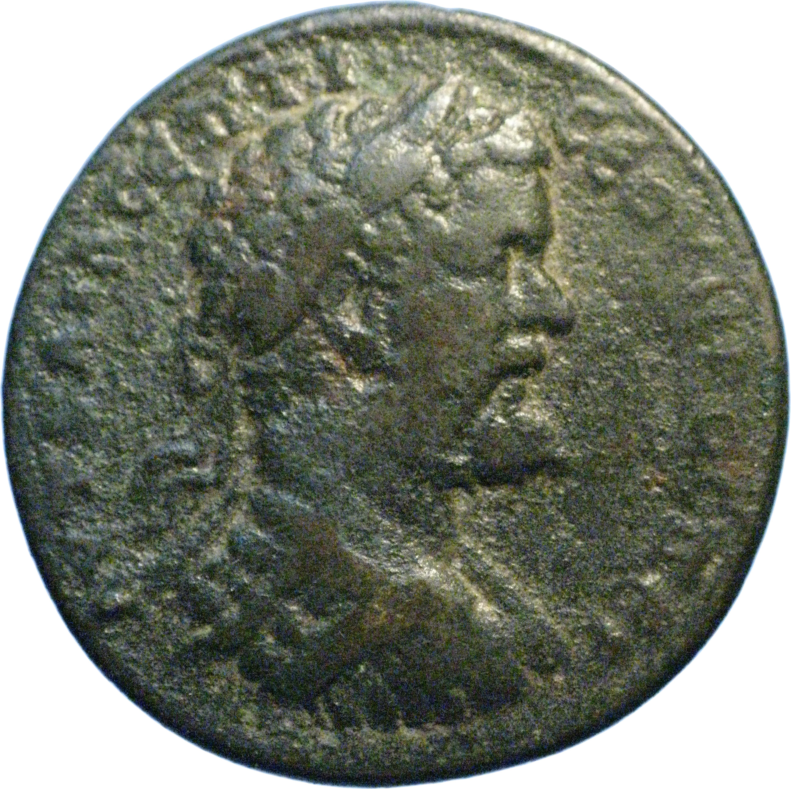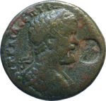 Heracles standing left, head right, holding club resting on ground and lion skin |