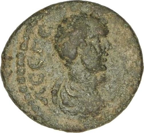 bare-headed, draped and cuirassed bust of Geta, right, seen from rear