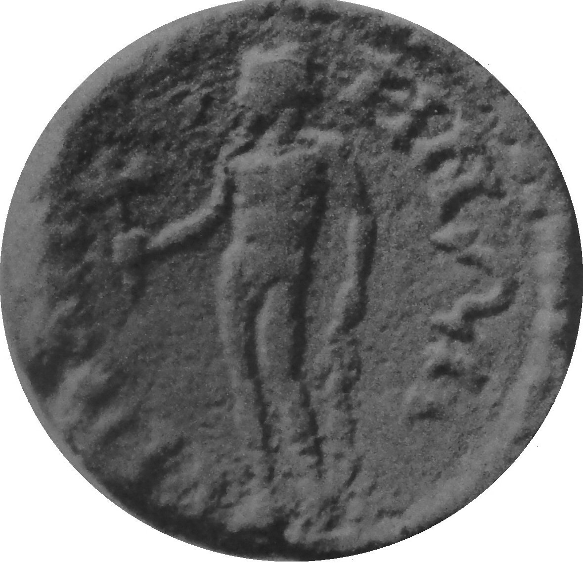 Apollo-Tyrimnaios standing left, holding double axe and branch