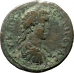laureate, draped and cuirassed bust of Geta, right, seen from rear
