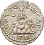 Mount Argaeus, surmounted by star; (to left, crescent)