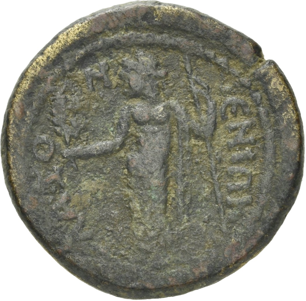 Demeter standing left, holding ears of corn and sceptre