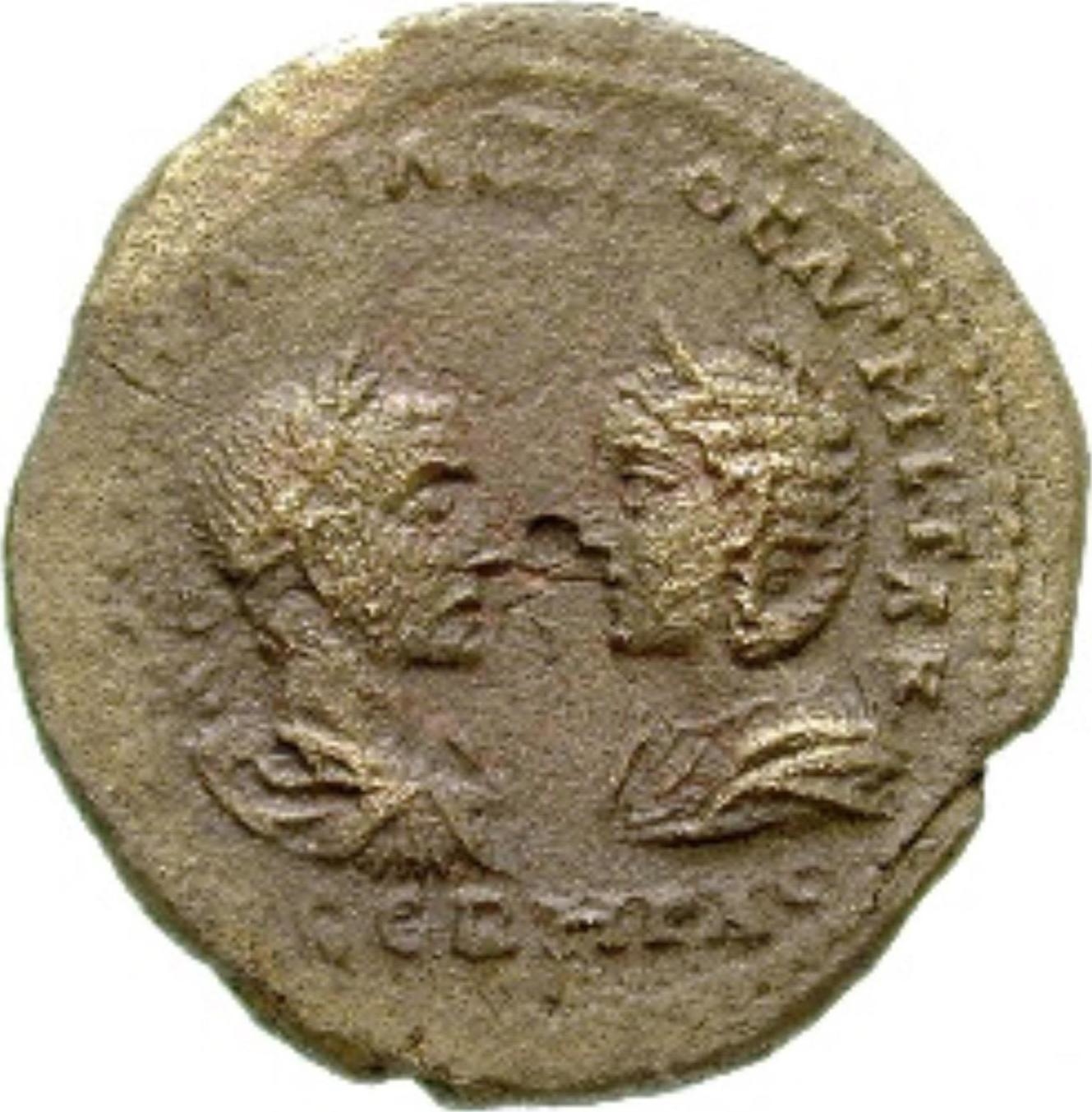 confronted busts of Philip I, laureate, draped and cuirassed, right, seen from rear, and Otacilia Severa, diademed and draped, left