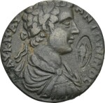 laureate, draped and cuirassed bust of Caracalla, right, seen from rear