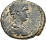 laureate, draped and cuirassed bust of young Caracalla, right, seen from rear