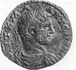 laureate, draped and cuirassed bust of Caracalla, right, seen from rear