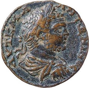 laureate, draped and cuirassed bust of Caracalla, right, seen from rear