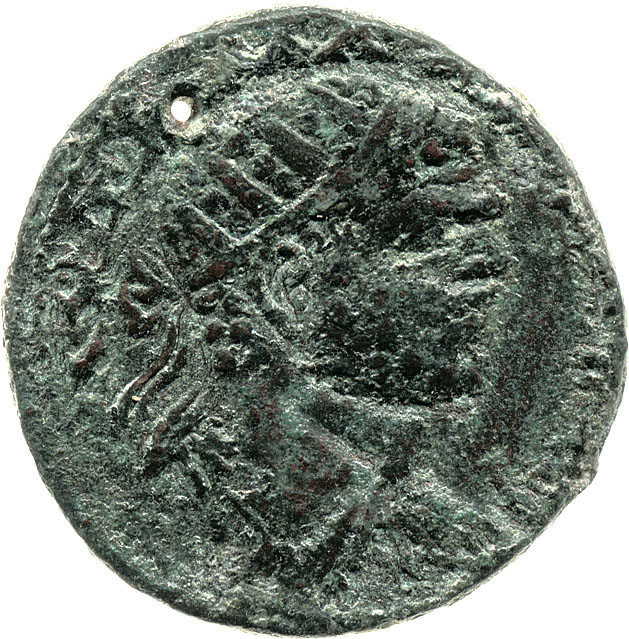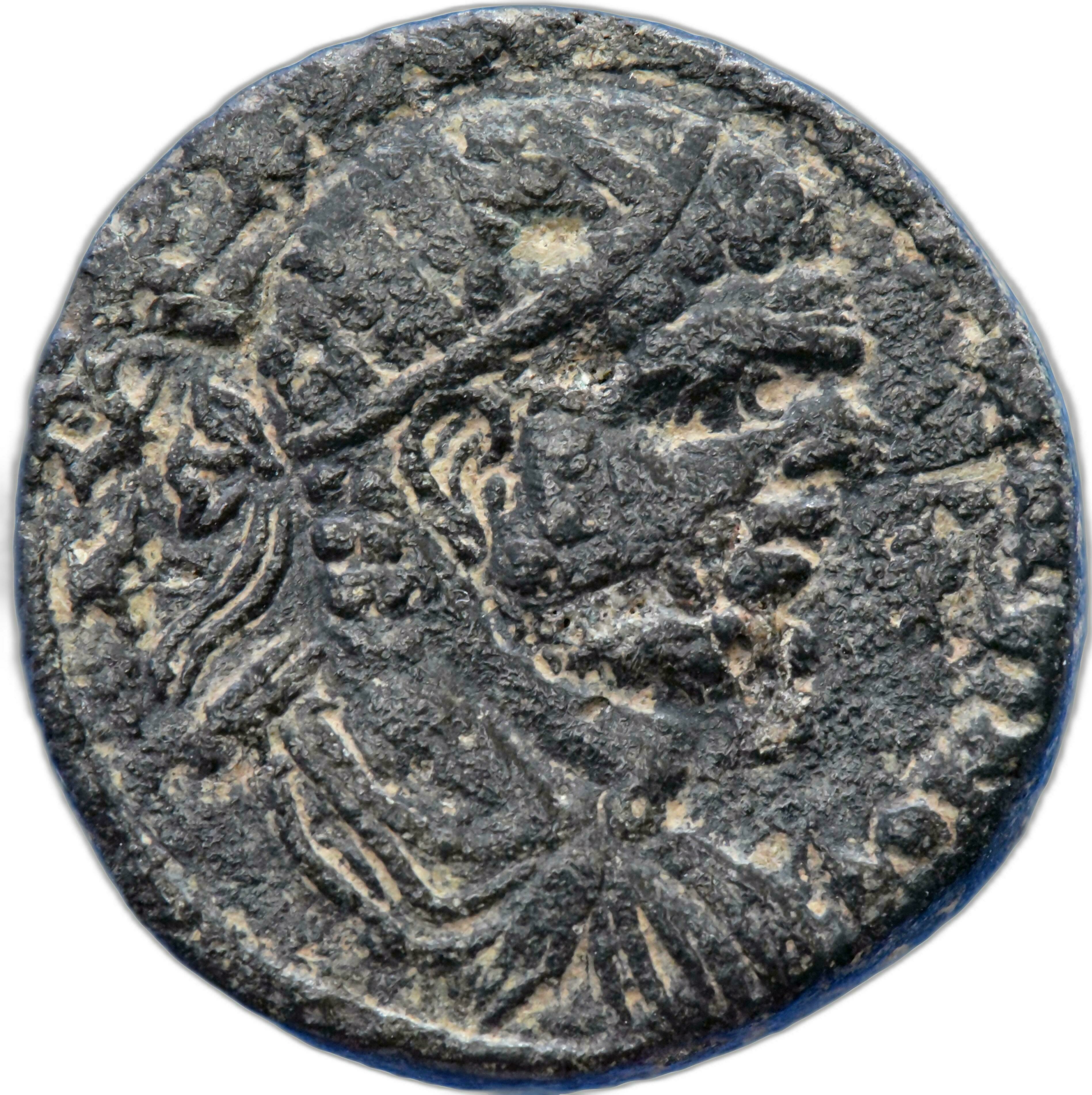 radiate, draped and cuirassed bust of Caracalla, right, seen from rear