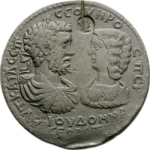 GIC 70 (Caracalla, laureate bust r.) ; the same cmk appears twice on the obv.