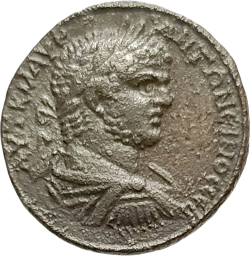 laureate, draped and cuirassed bust of Caracalla, right, seen from rear |