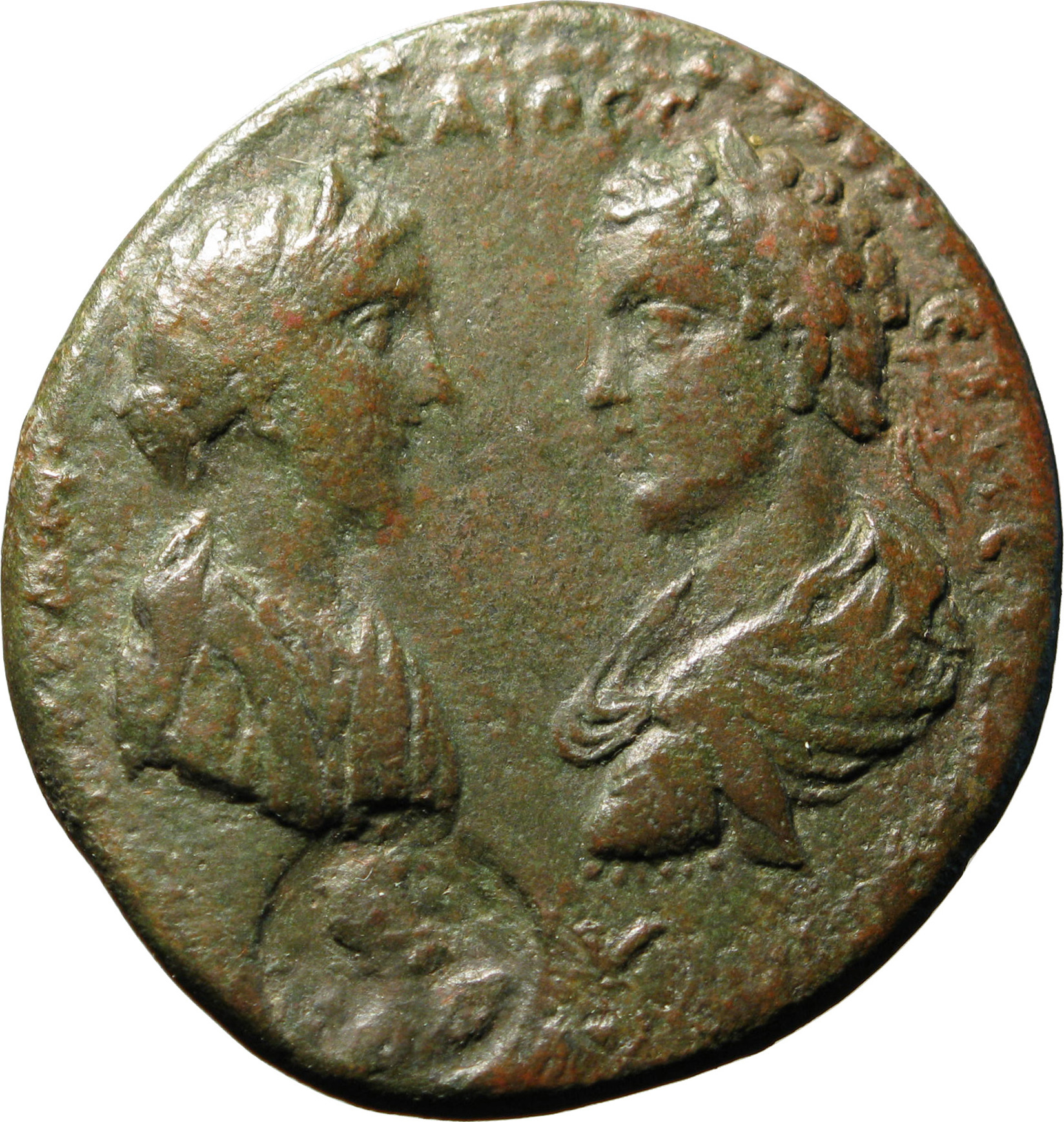 GIC 188 (Athena (or Roma)?, helmeted head r.); GIC 536 (ΘΕΟΥ) ; double struck on rev.