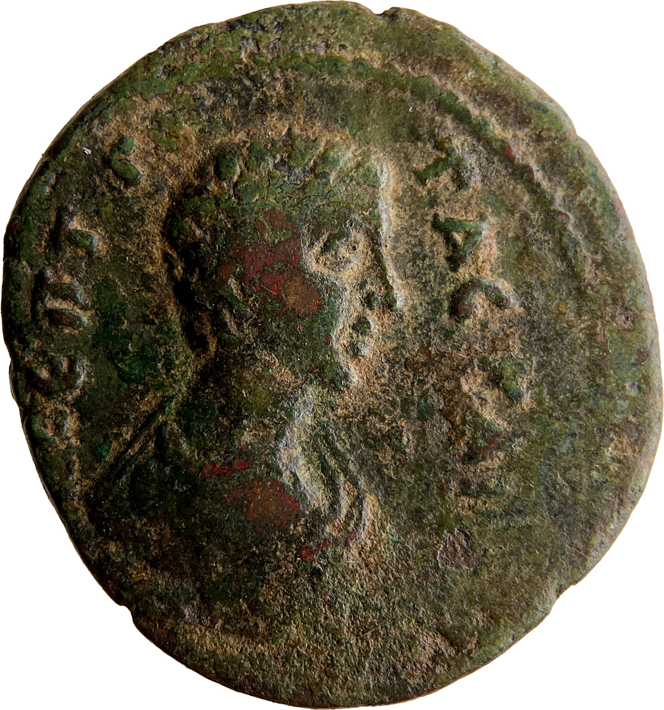 bare-headed, draped and cuirassed bust of Geta, right, seen from front