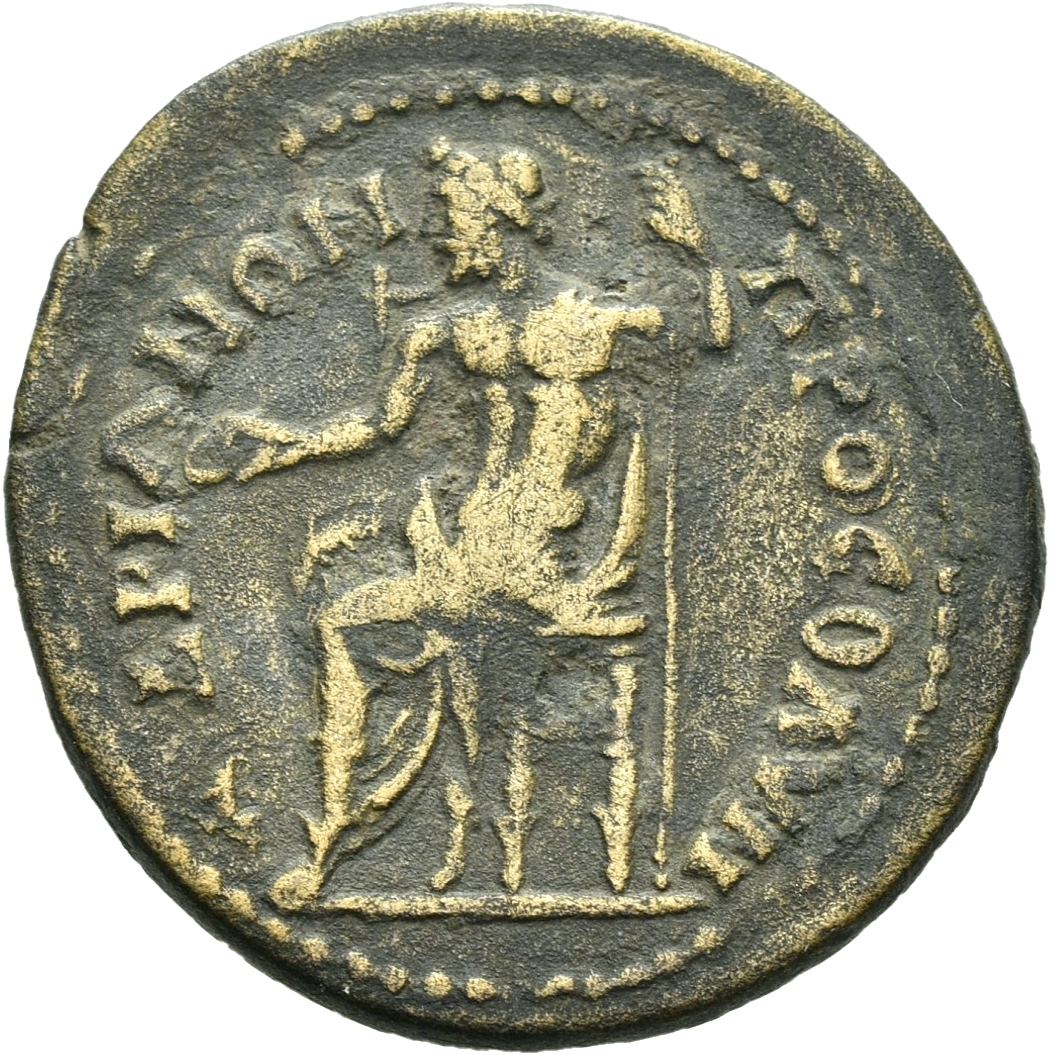 Zeus seated left, holding patera and sceptre