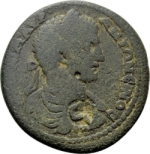 laureate, draped and cuirassed bust of Caracalla, right, seen from rear