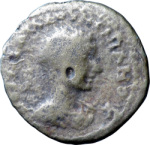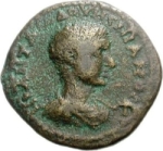 bare-headed, draped and cuirassed bust of Diadumenian, right, seen from front