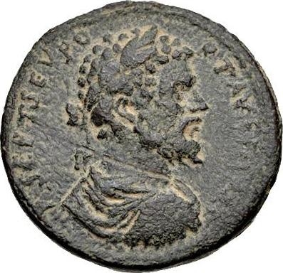 laureate, draped and cuirassed bust of Septimius Severus, right, seen from rear |