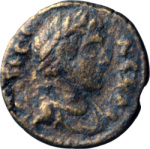 laureate, cuirassed and draped bust of Geta, right, seen from front