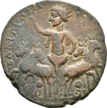 | Reverse design | Septimius Severus radiate, standing facing, head left, raising right hand, reins in left hand, in quadriga of deer |