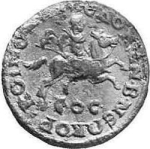 Alexander the Great riding Bucephalus galloping right, holding couched spear