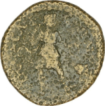 Artemis Huntress advancing left, head right, holding bow in left, quiver at shoulder; to right, boar