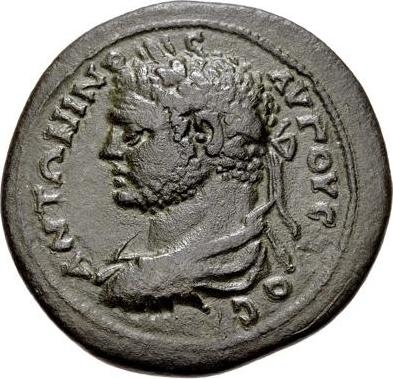 laureate, draped and cuirassed bust of Caracalla, left, seen from rear