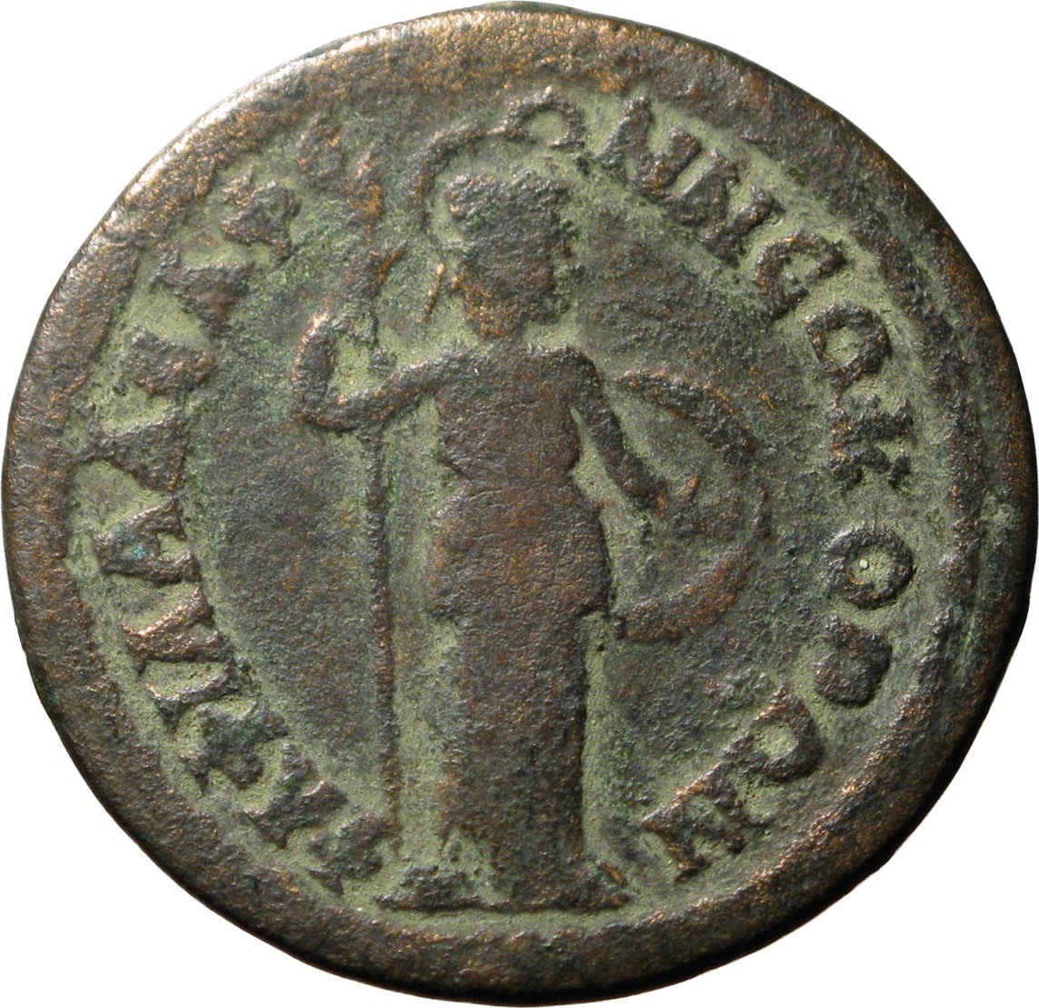 Athena standing right, holding spear and shield