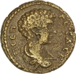 bare-headed, draped and cuirassed bust of Geta, right, seen from rear