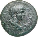 bare-headed, draped and cuirassed bust of Geta, right, seen from rear
