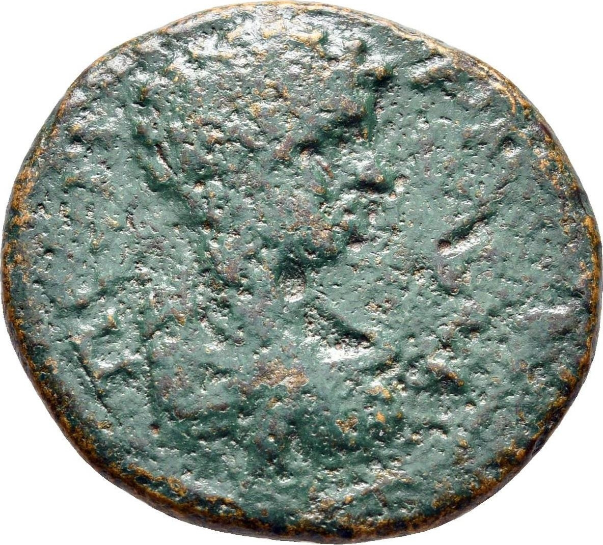 bare-headed, draped and cuirassed bust of Geta, right, seen from rear