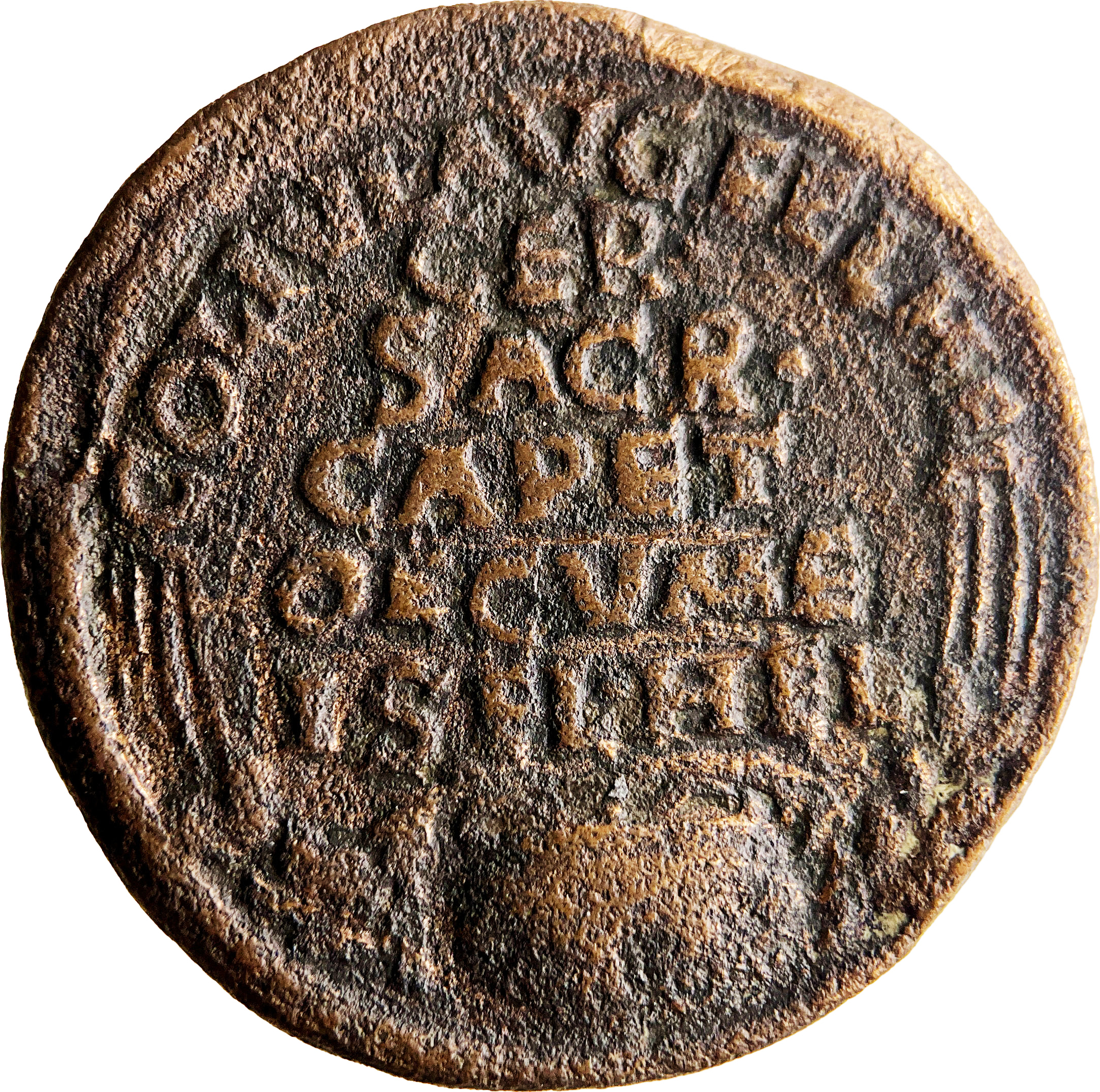 col(onia) Iul(ia) Aug(usta) Fel(ix) Hel(iopolis) cert(amen) sacr(um) Capet(olinum) Oecume(nicum) Isel(asticum) Hel(iopolitanum)